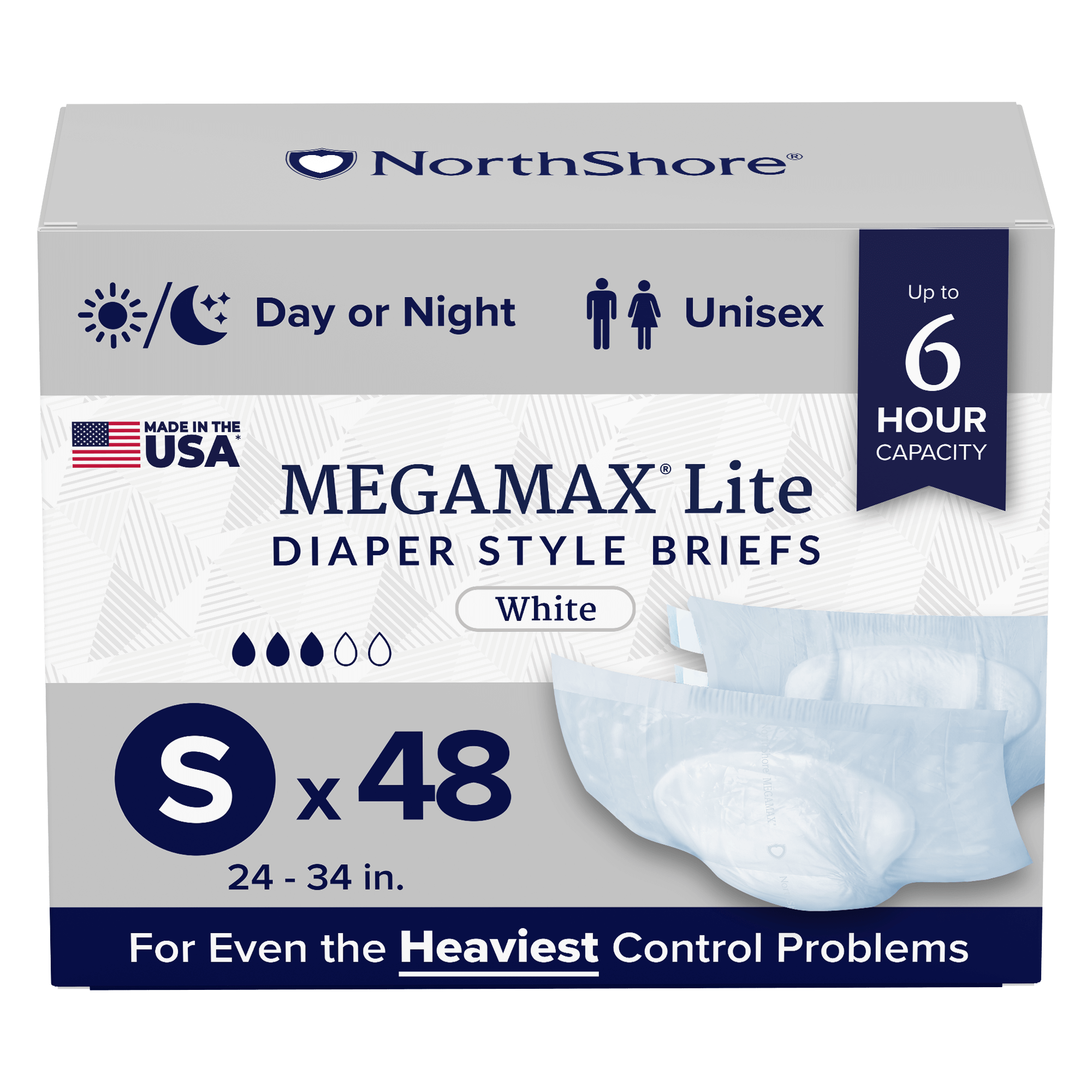 NorthShore MegaMax Lite 6-Hour Daytime HBL Diaper Style Briefs
