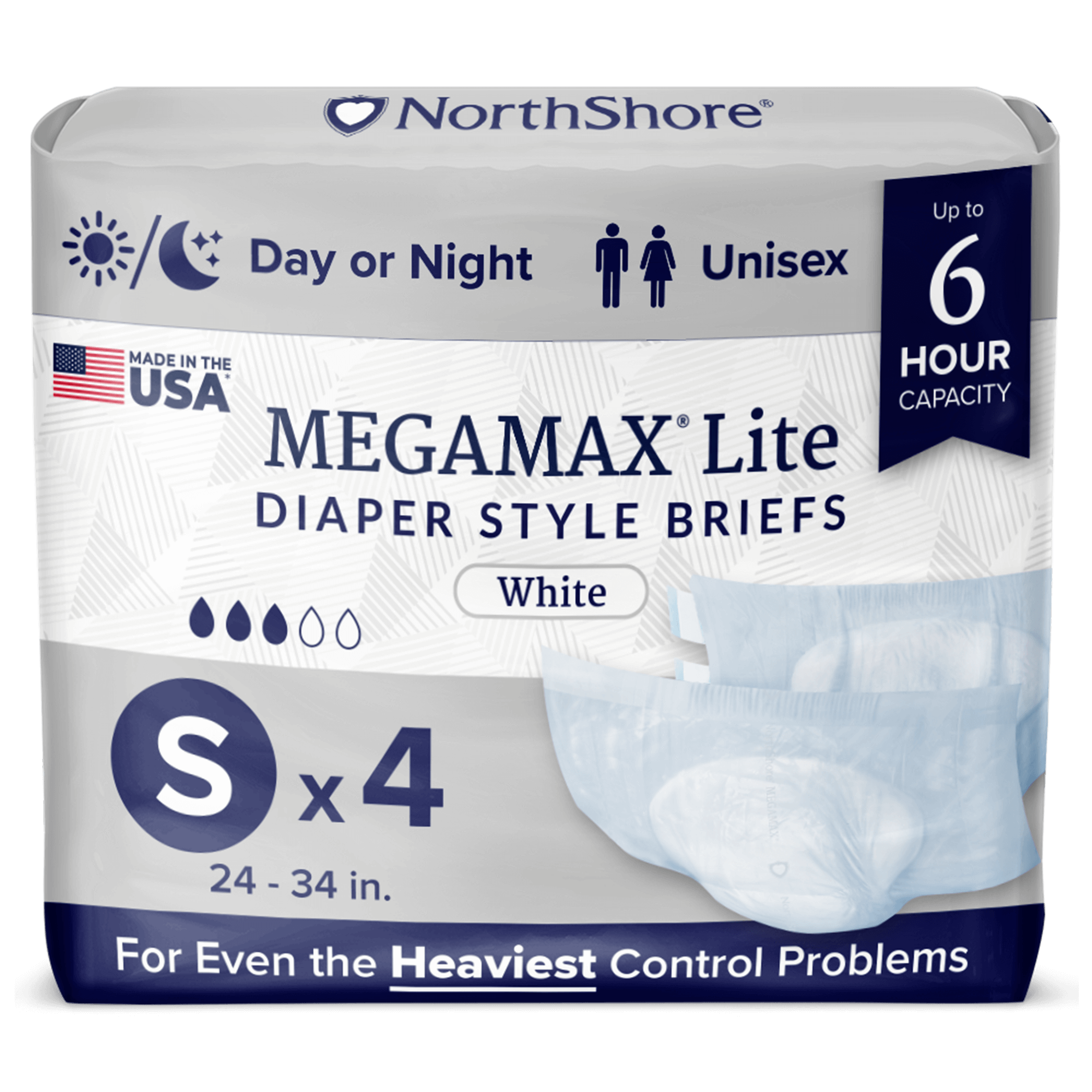 NorthShore MegaMax Lite 6-Hour Daytime HBL Diaper Style Briefs