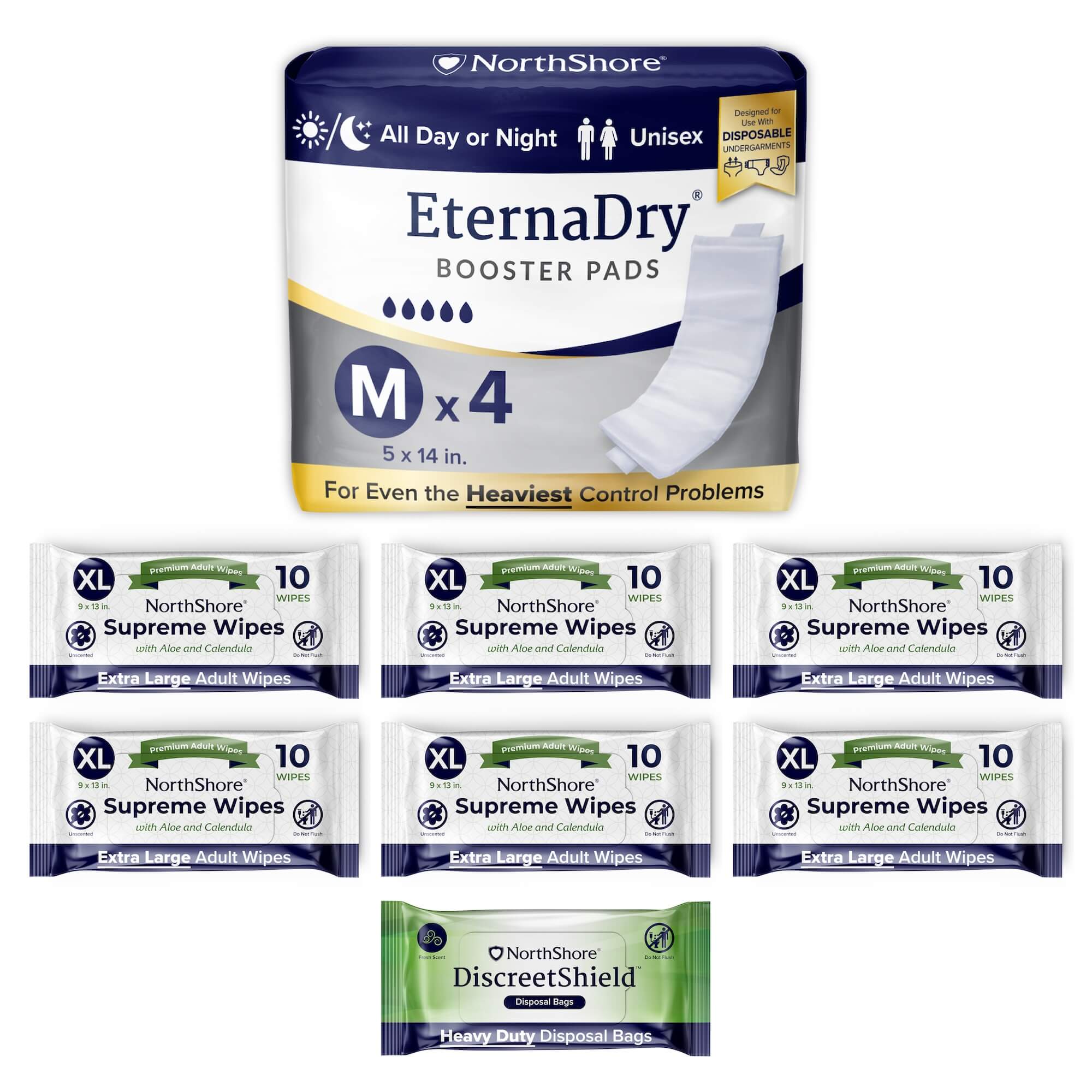 | Sizes Available | Supreme Wipes: 6-Pack Travel Wipes (#1954); Disposal Bags: Pack/25 (#3283) Boosters: Medium Pack/4 (#1507T) |