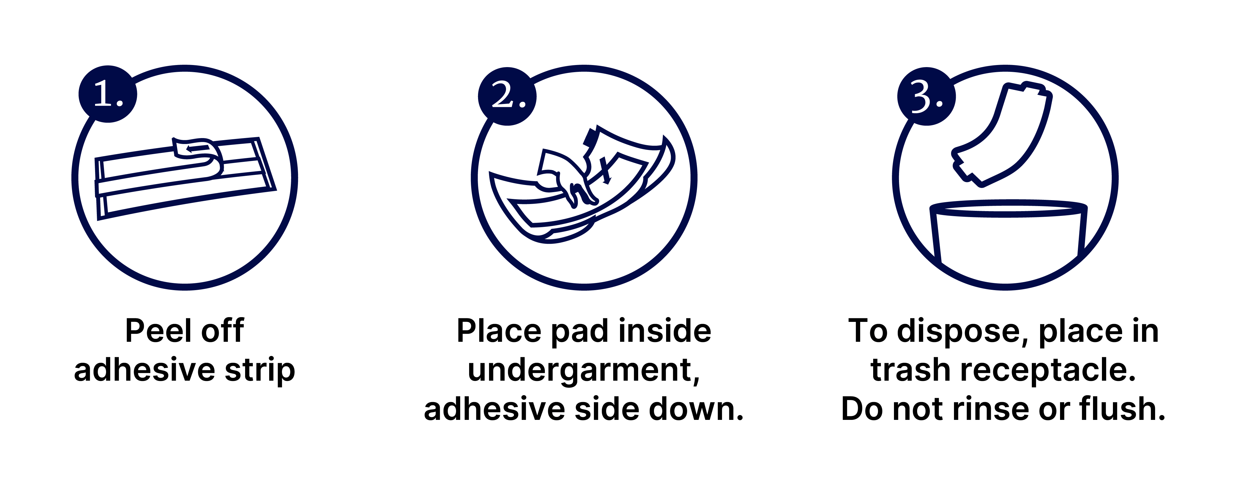 Never flush used pads in toilet. Latex Free. Packaging may vary slightly from what is shown.